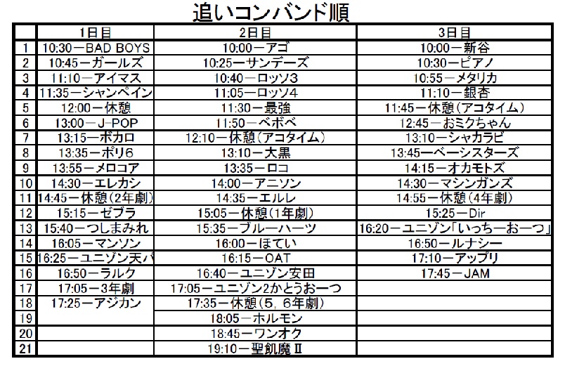 4/21 入部確定会 この会までに新歓ライブ用の課題曲楽譜とCDを用意しておいてください。だいたい50部ずつくらい。