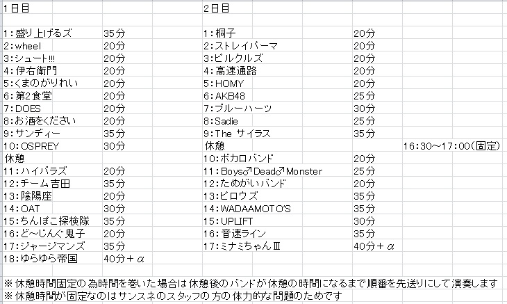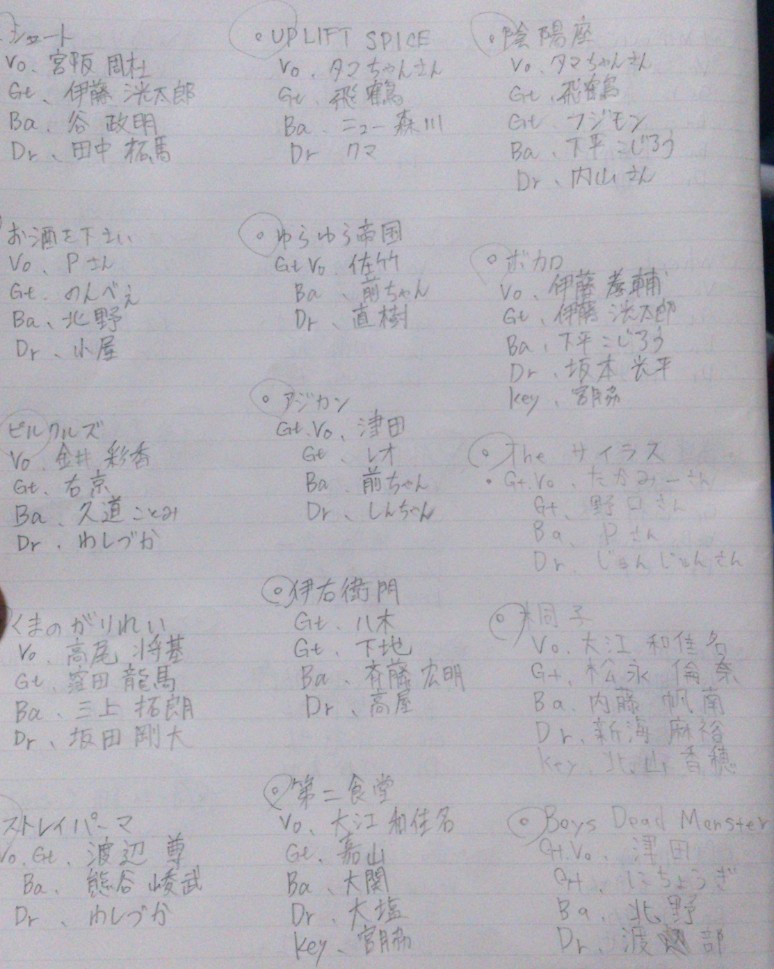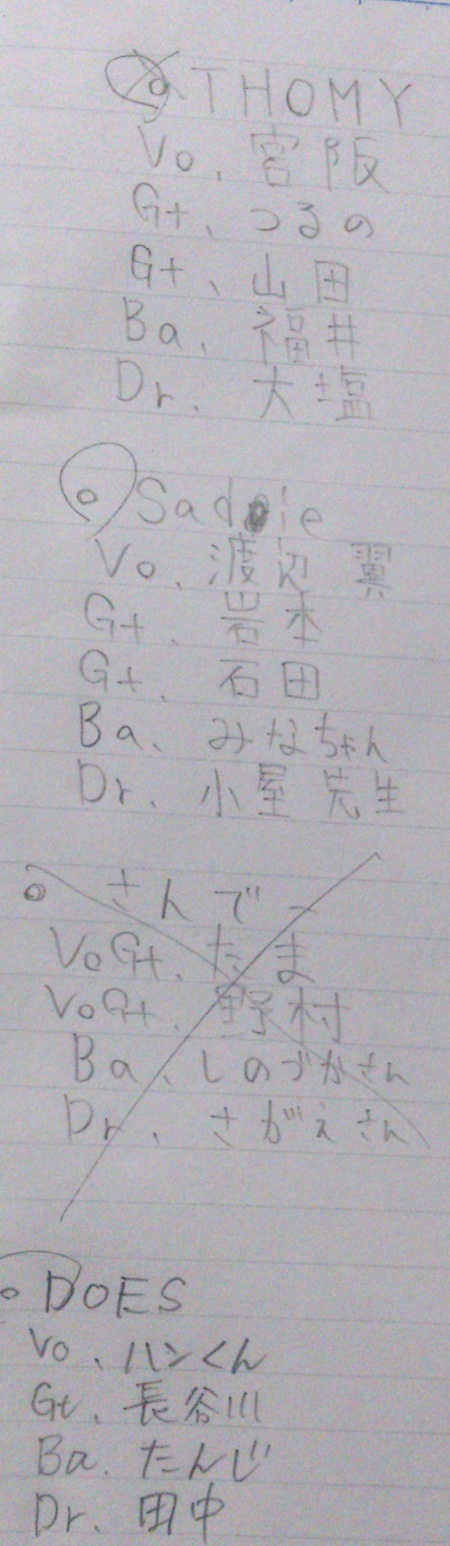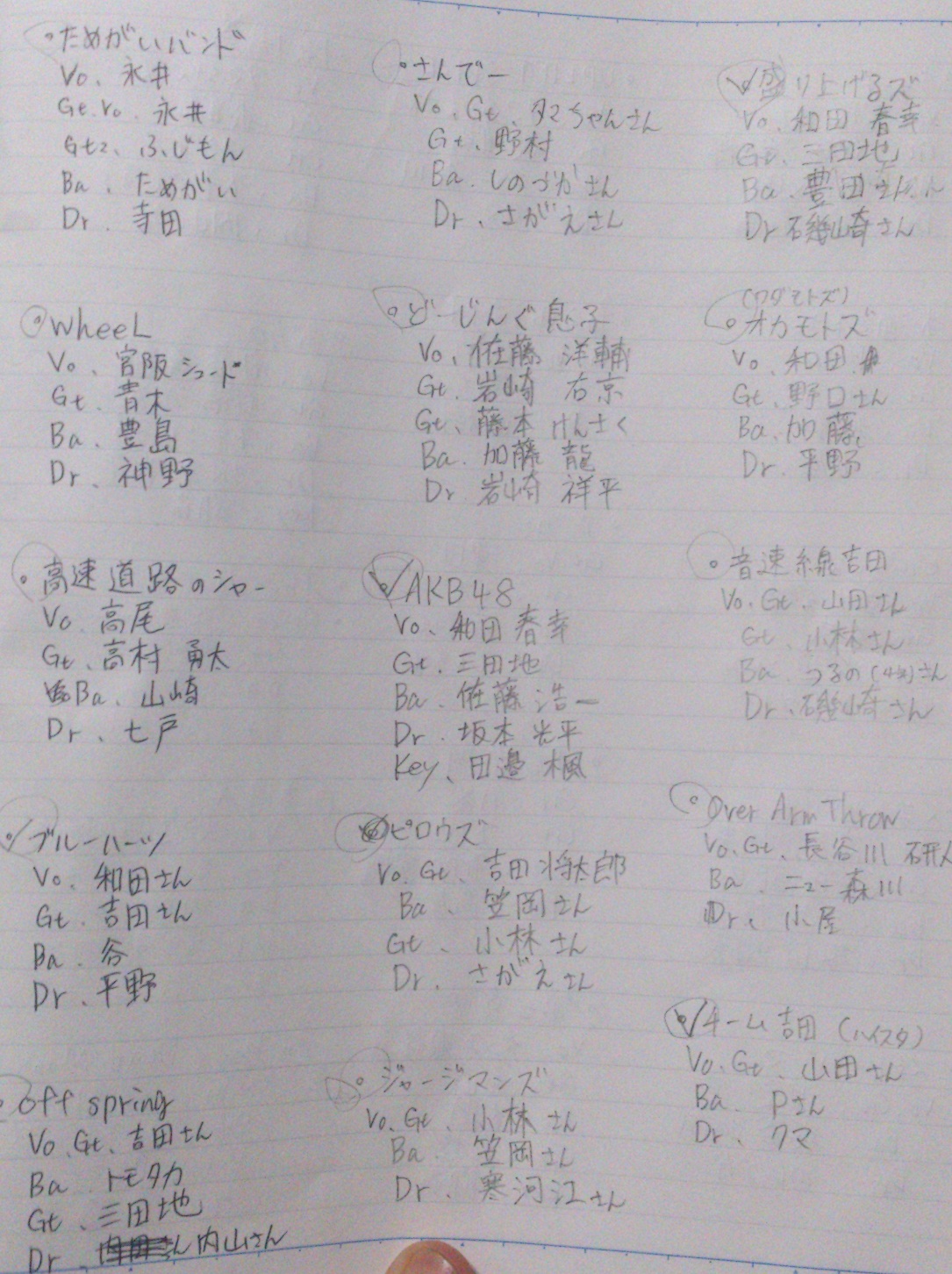 とてもおそくなったけど一応バンドのメンバー表(●×とかのは短冊とかのチェックした奴なので特に関係無いです)
