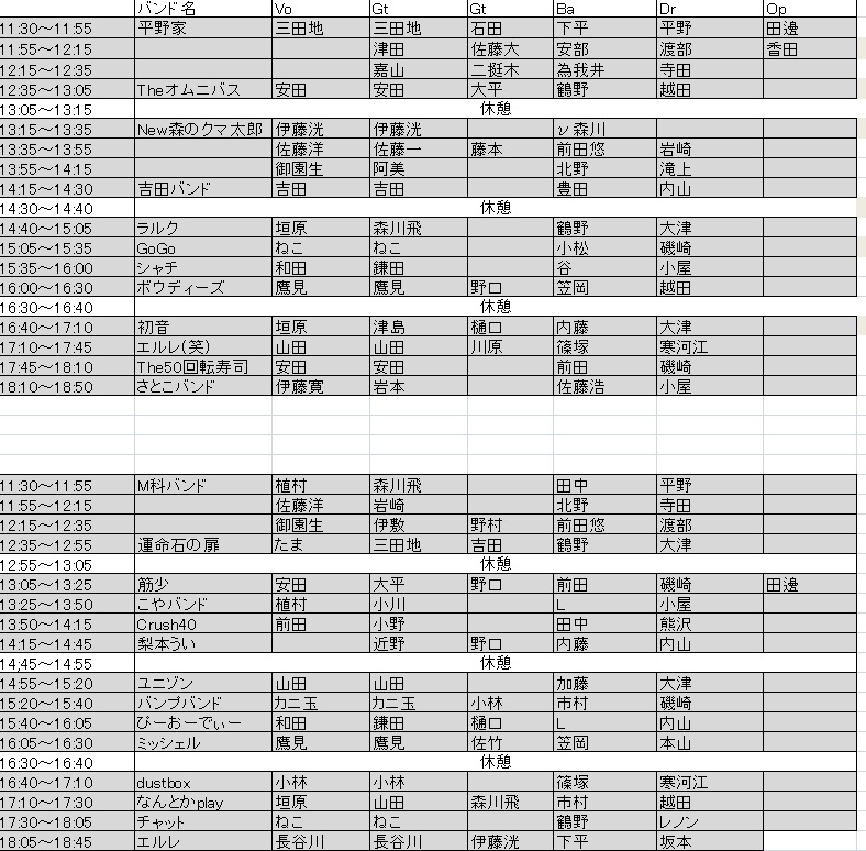 バンド名 Vo Gt Gt Ba Dr Op
